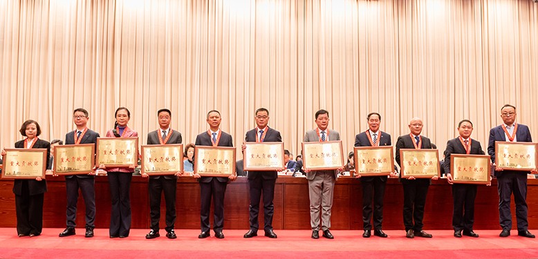 總經(jīng)理丁志鴻(左四)上臺領(lǐng)取2024年度常州市重大貢獻獎