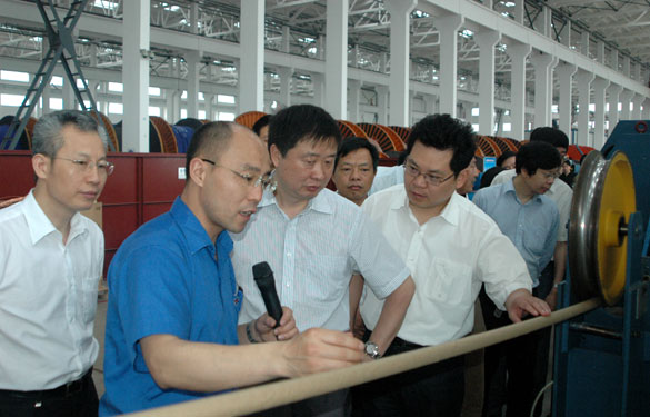 在常務副總經理丁志鴻的陪同下,與會領導、專家參觀了上上集團超高壓電纜生產基地。