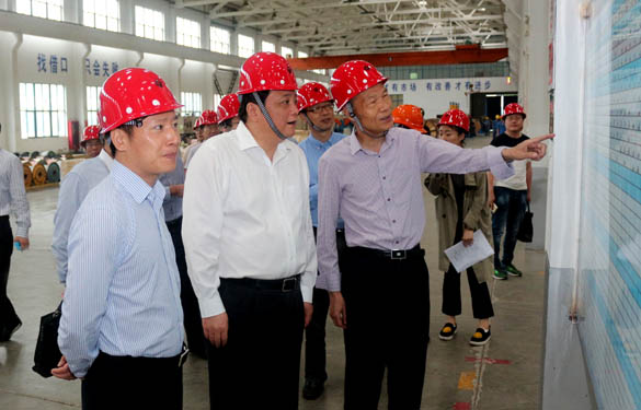 2016年6月12日,常州市委常委、常務(wù)副市長韓九云一行在溧陽市委書記蔣鋒、副市長蔡金龍等領(lǐng)導陪同下來江蘇上上電纜集團調(diào)研,集團董事長丁山華陪同韓市長一行參觀了西廠區(qū)特種電纜生產(chǎn)基地。