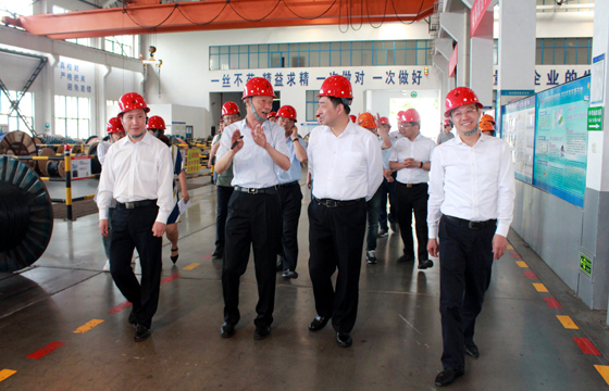 6月1日,常州市委書(shū)記汪泉一行來(lái)上上電纜西廠區(qū)特種電纜生產(chǎn)基地參觀調(diào)研,溧陽(yáng)市委書(shū)記蔣鋒、市長(zhǎng)徐華勤、市委常委、中關(guān)村產(chǎn)業(yè)園黨工委副書(shū)記莊松年、集團(tuán)董事長(zhǎng)丁山華、總經(jīng)理丁志鴻等陪同調(diào)研。